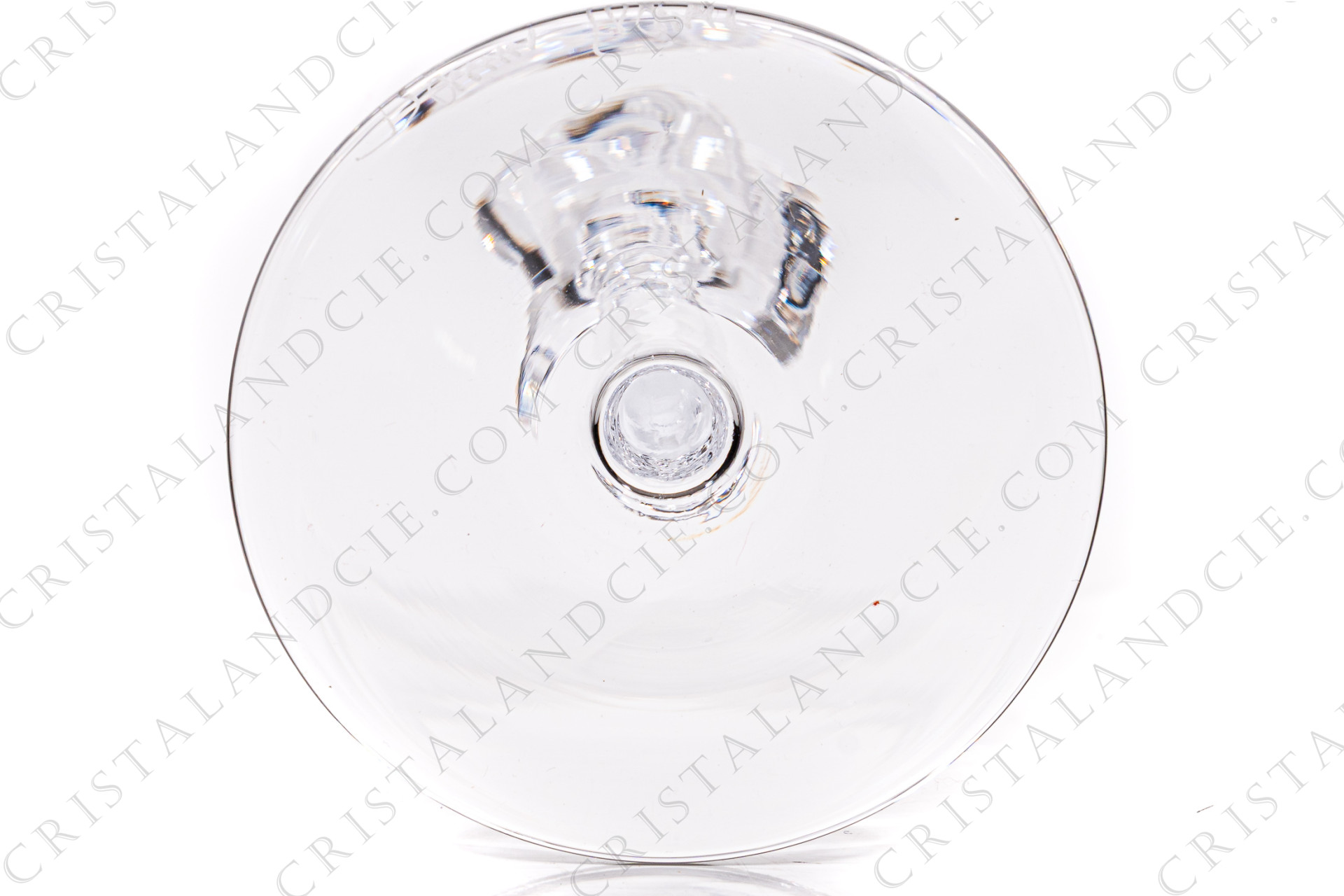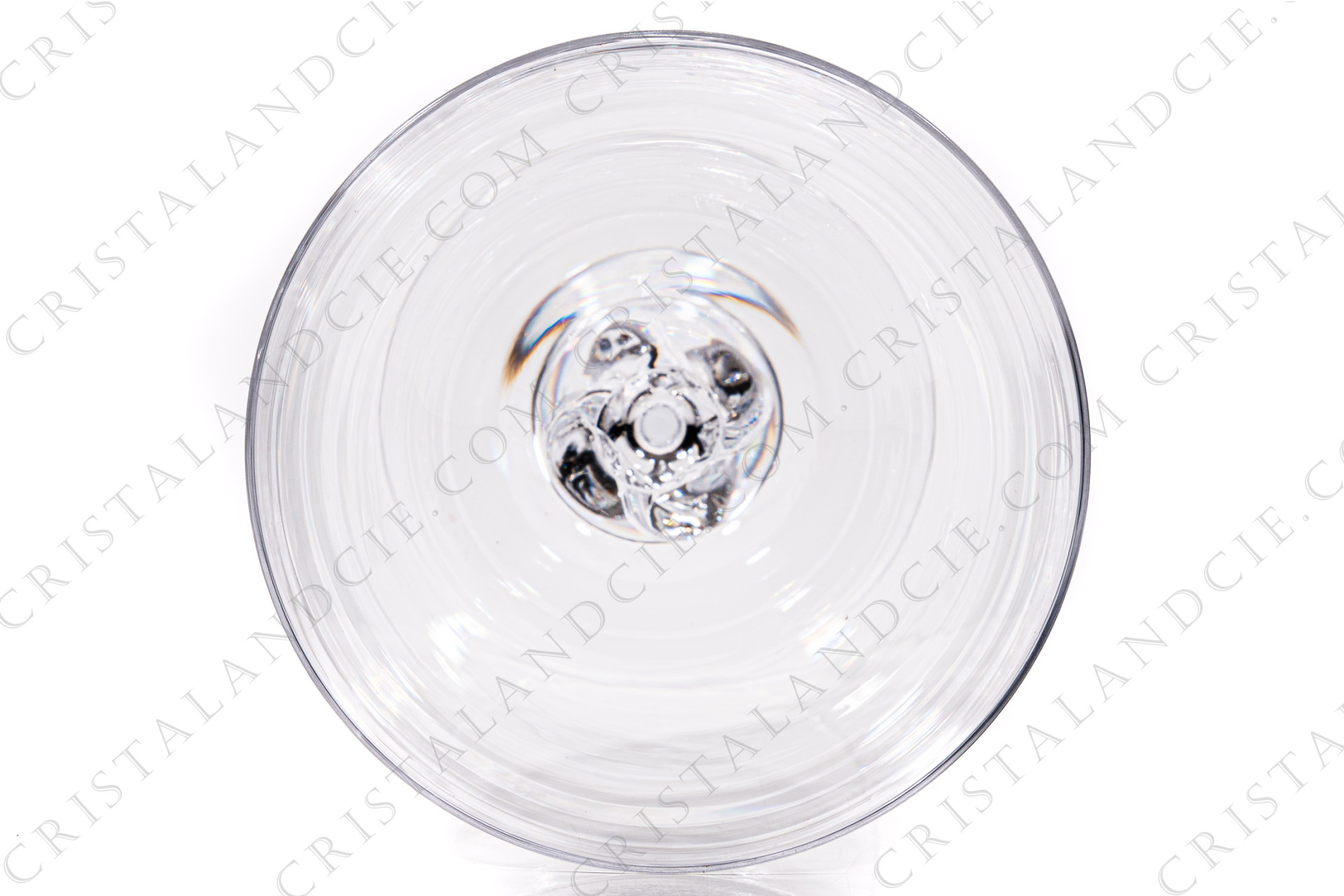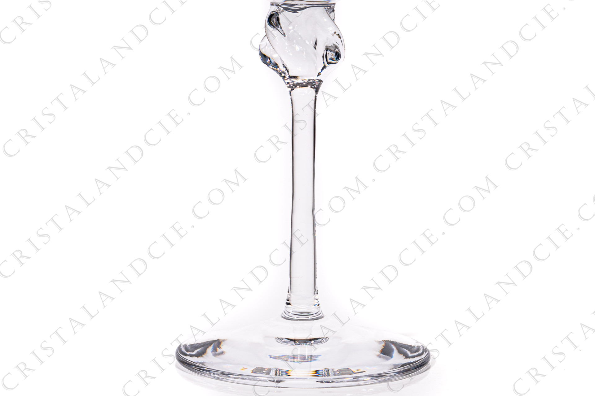 Série de six verres à eau n°2 en cristal de Daum modèle Boléro présentant une bague torsadée sur la jambe. Modèle créé en 1960. Estampillé, étiquette Daum sur quatre verres. Vendus dans leur boite d'origine.