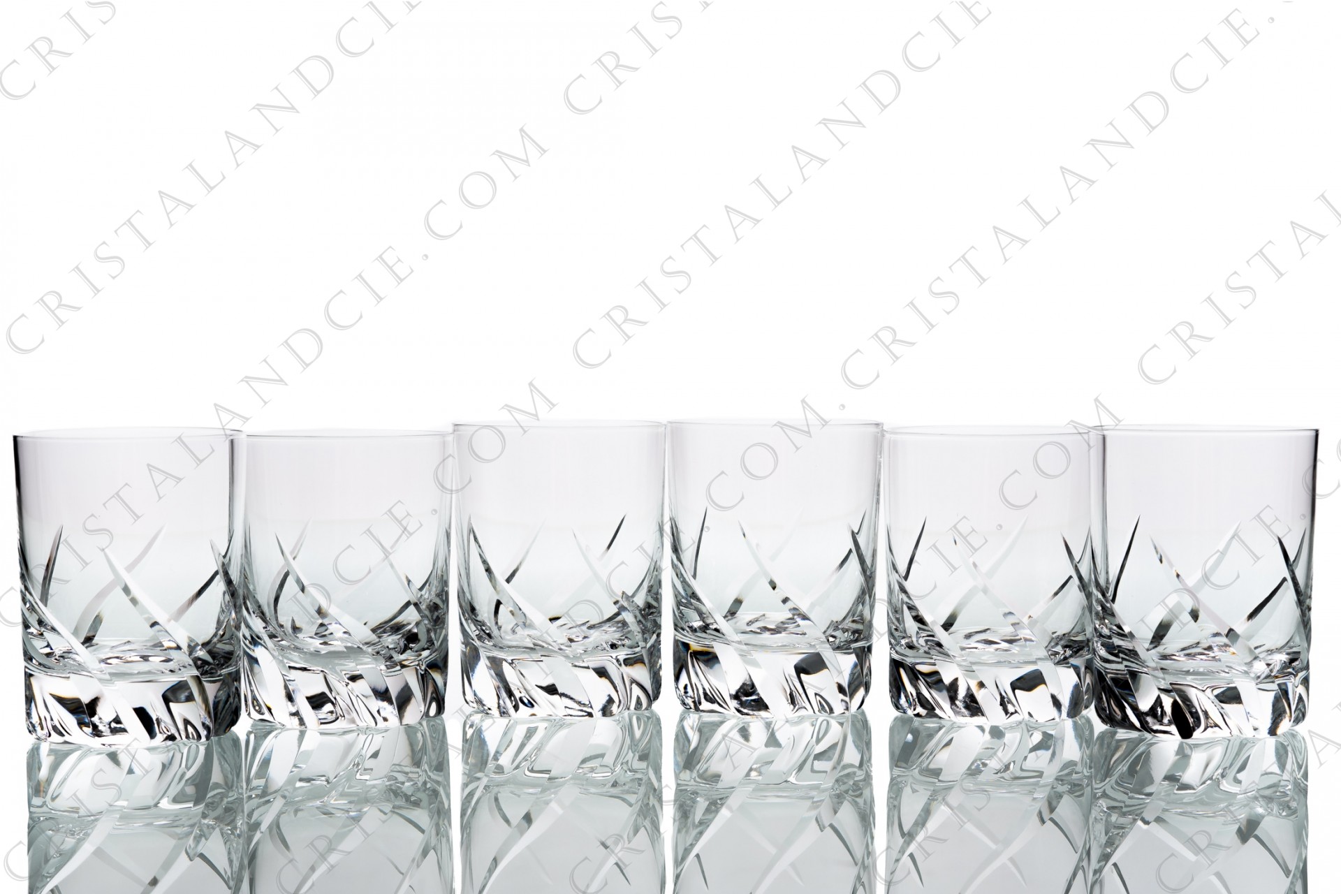 Série de six verres à vin n°4 en cristal de Daum modèle Bleneau à décor taillé. Estampillés.