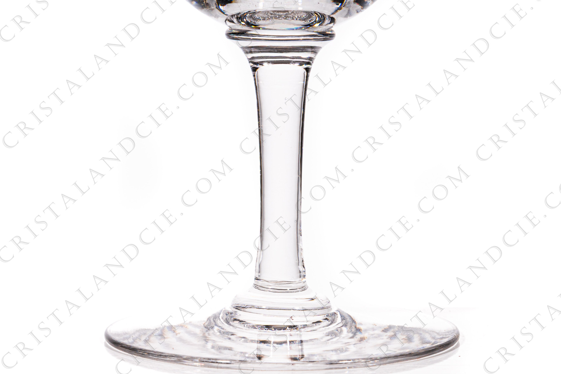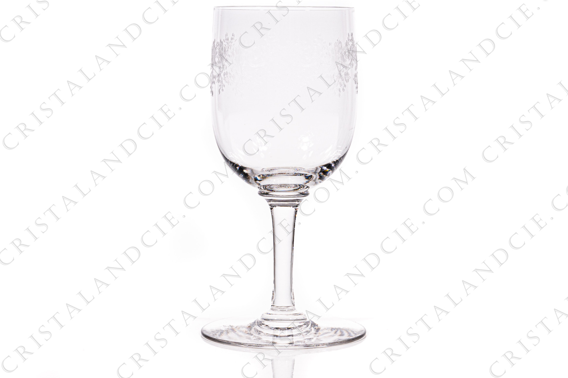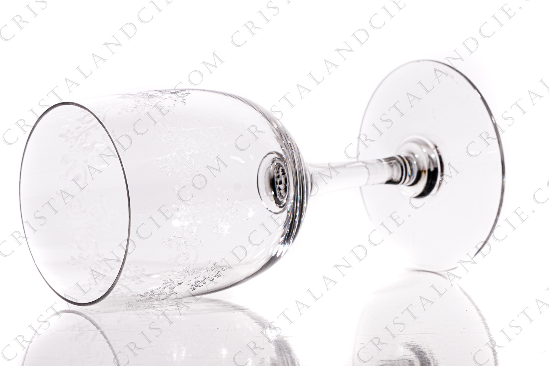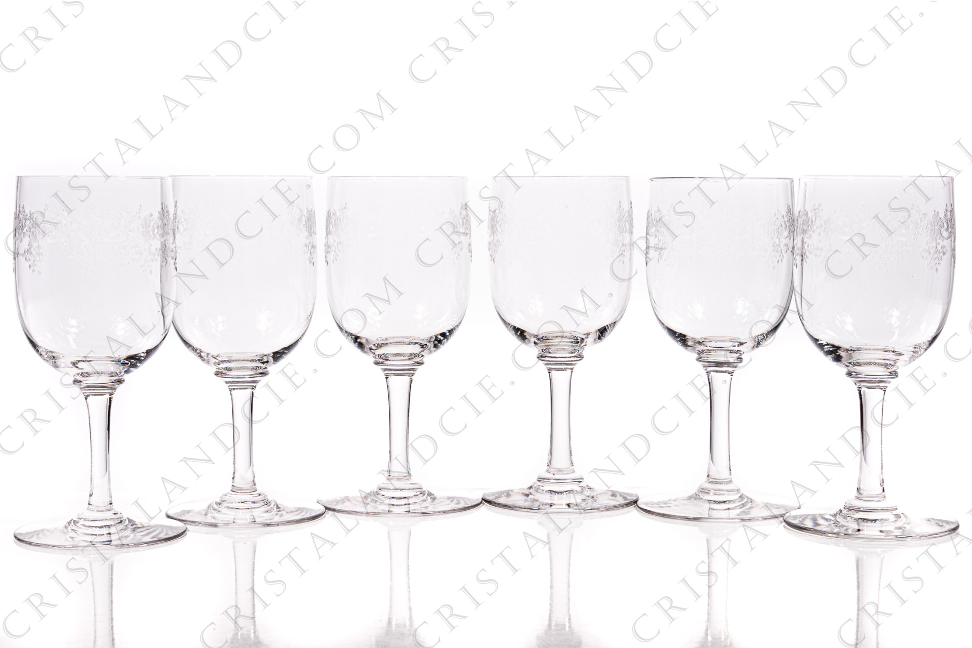 Série de six verres à vin n°4 en cristal de Baccarat modèle Sévigné présentant un décor d'arabesques gravé. Modèle créé en 1899. Trop anciens pour être estampillés.