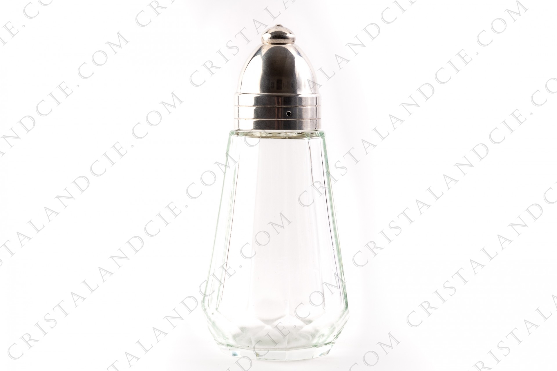 Sucrier saupoudreuse en métal argenté et verre de la maison Christofle modèle Megève.