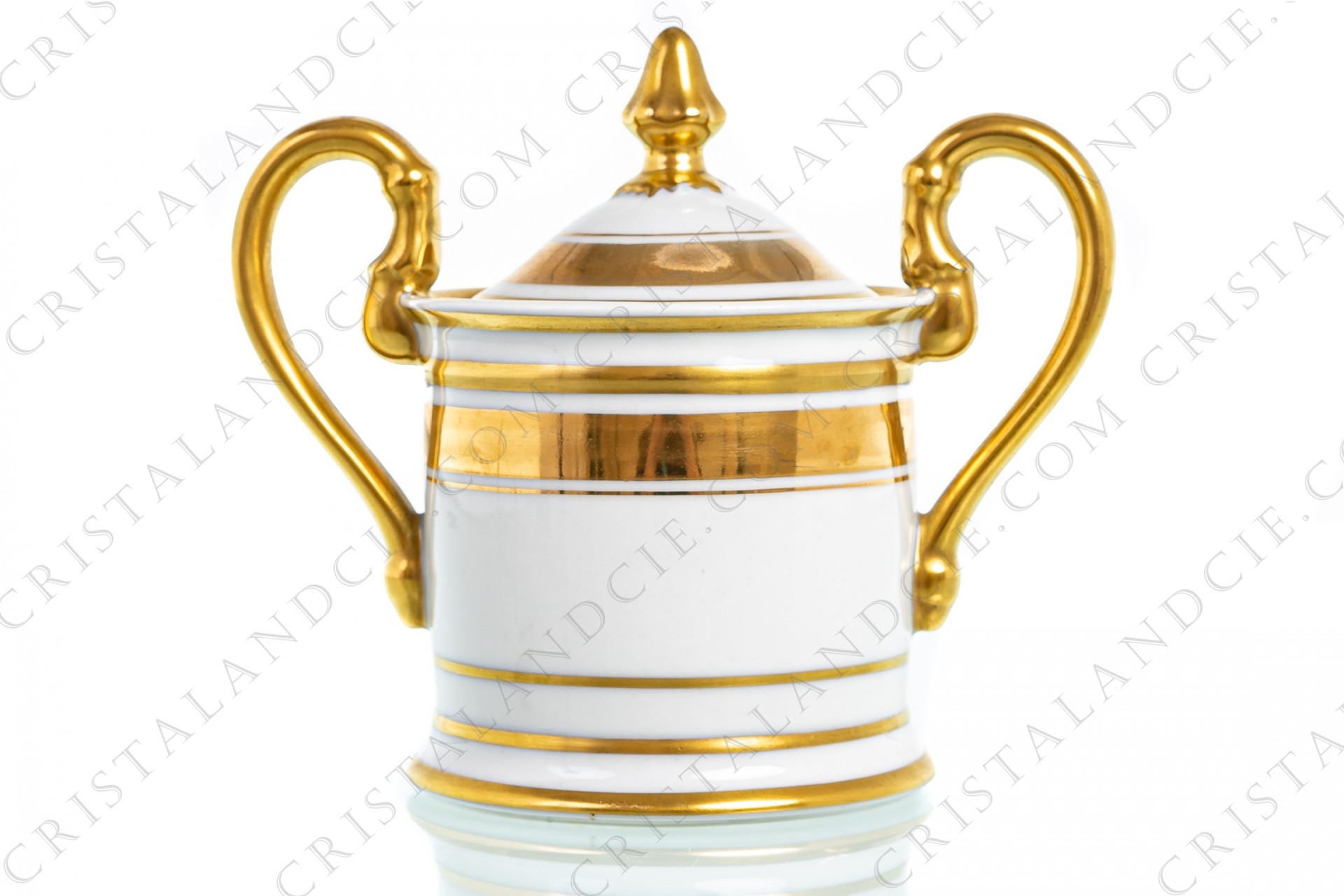 Sucrier en porcelaine de Limoges de la maison Pastaud orné de filets or peints à la main. Datant des années 1950.