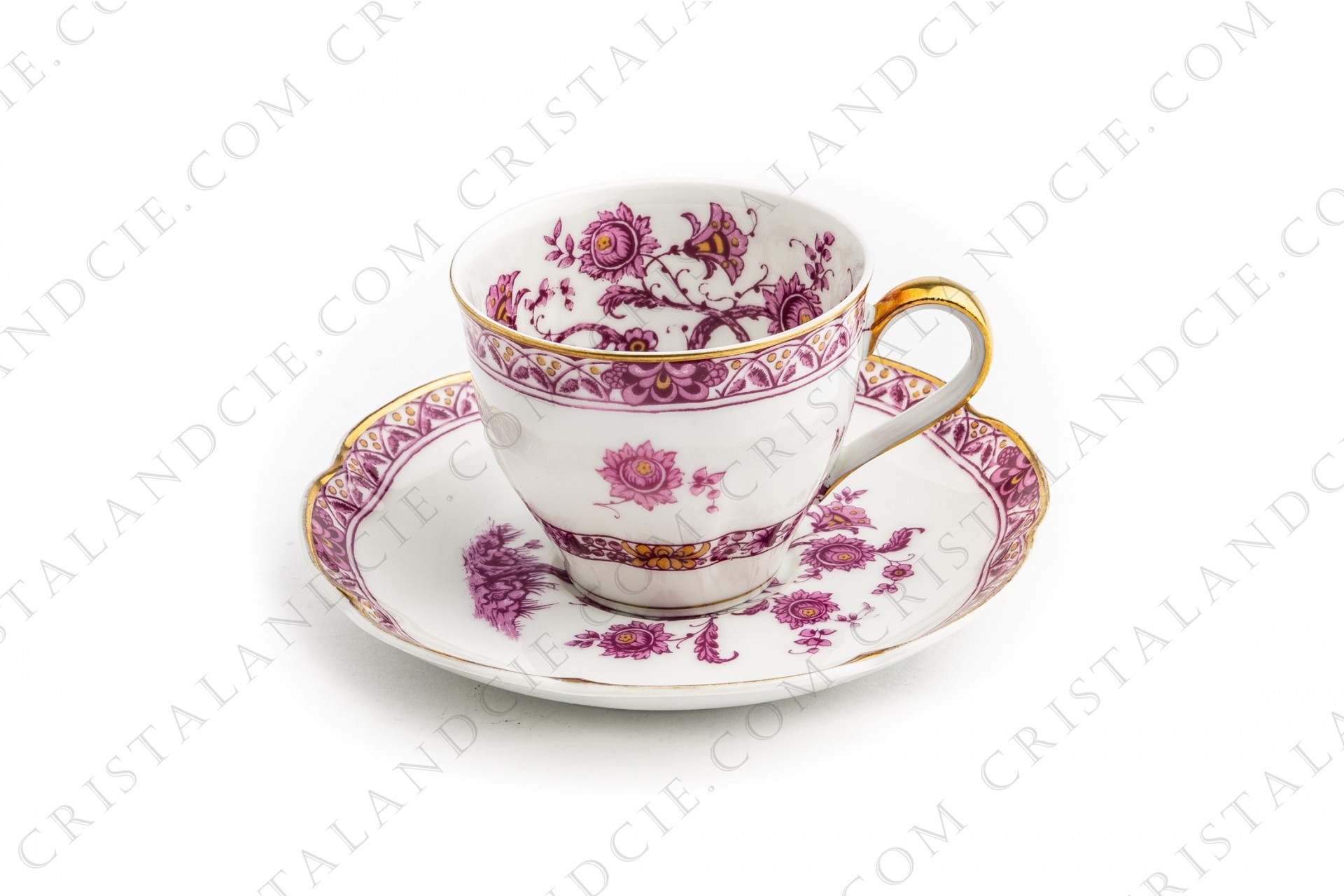Tasse à café en porcelaine de Limoges de la maison Haviland modèle Arbre mauve à décor d'arbre fleuri mauve.