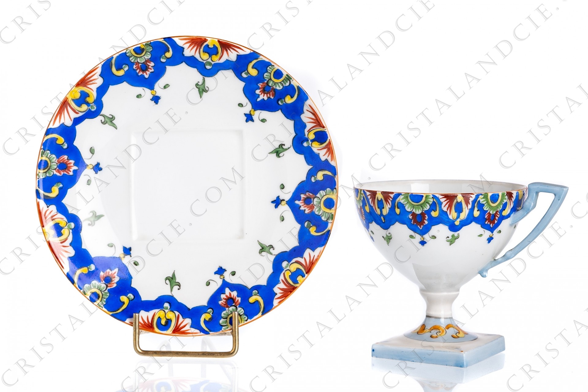Tasse à café en porcelaine de Limoges de la maison Tressemann et Vogt (Raynaud) présentant un important décor polychrome peint à la main.