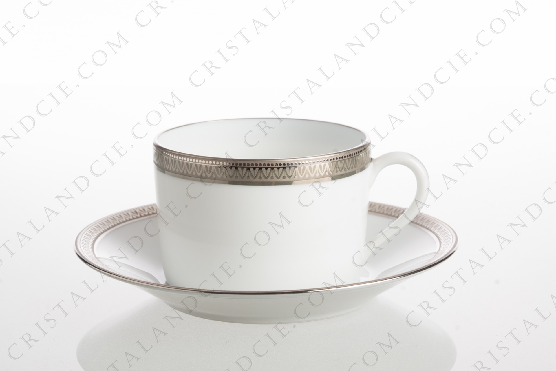 Tasse à thé en porcelaine de Limoges de la maison Haviland et Parlon modèle Malmaison ornée de frises platine.