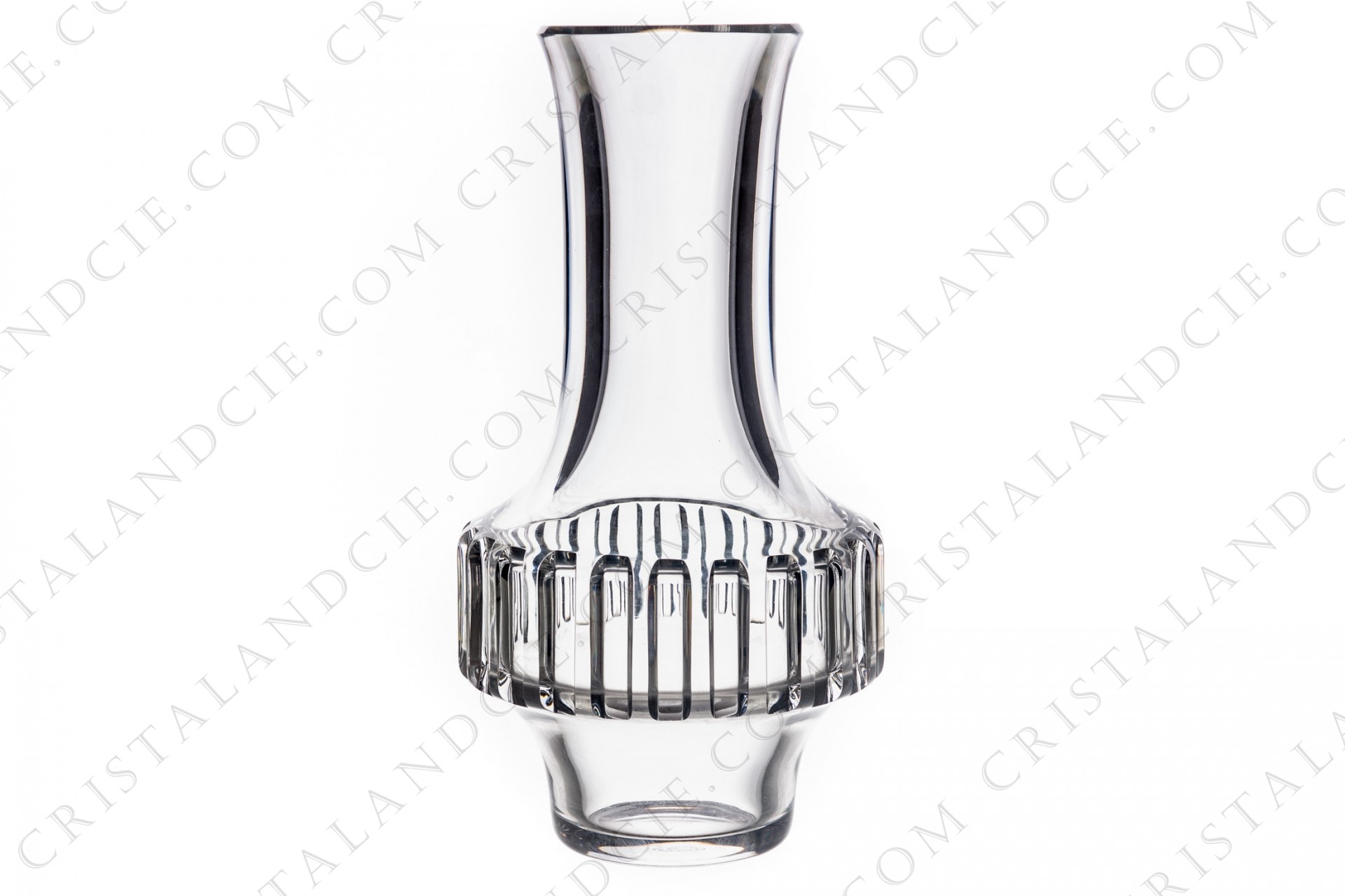 Vase en cristal de Baccarat présentant un décor Art Déco taillé sur la panse. Estampillé.