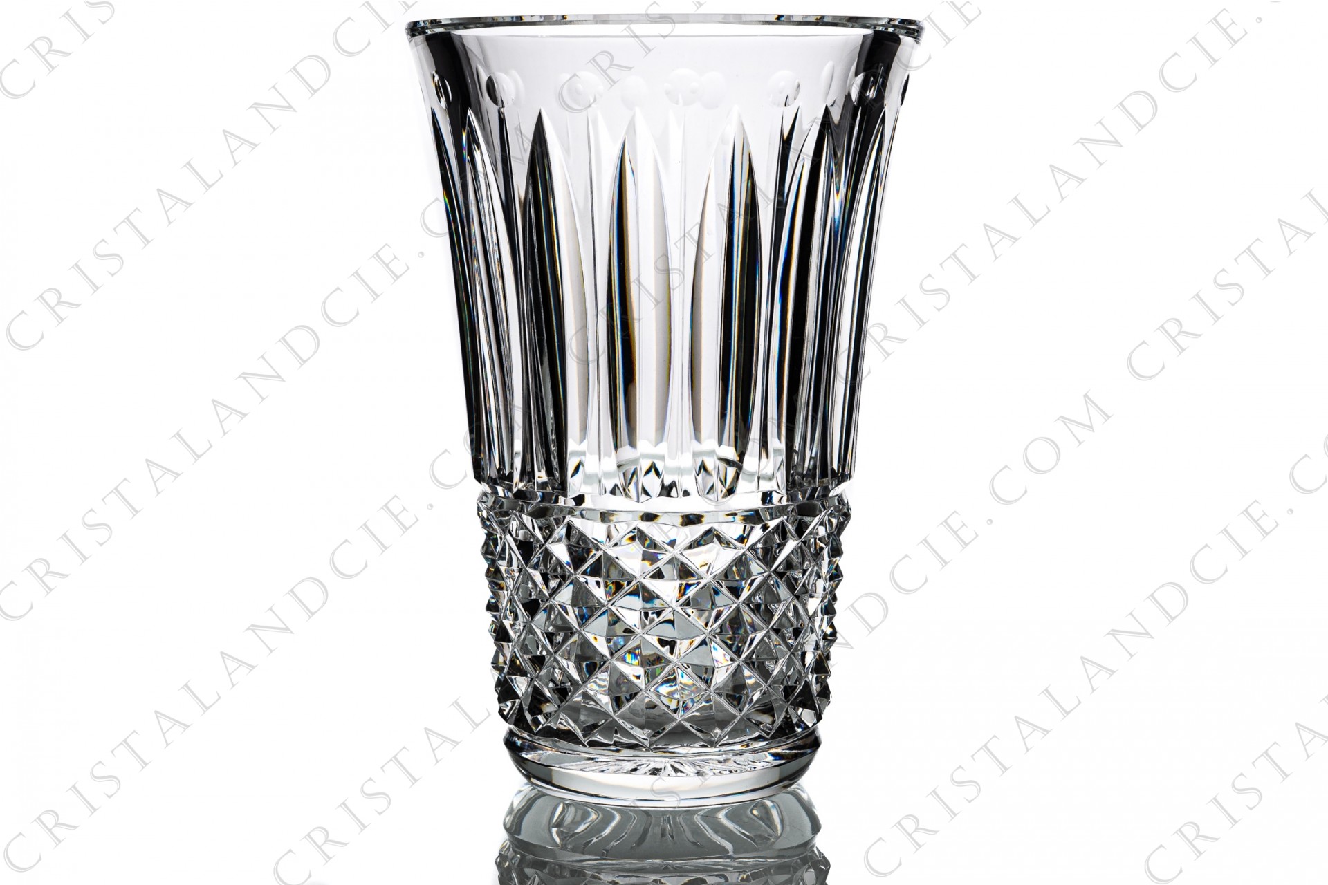 Vase en cristal de Saint-Louis modèle Tommyssimo présentant un important décor taillé de biseaux et pointes de diamants. Modèle créé en 1928. Estampillé.
