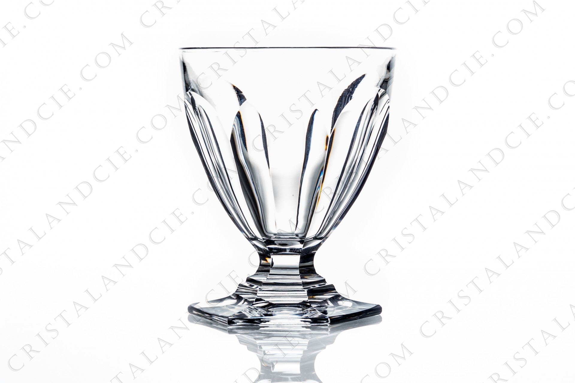 Verre à eau n°2 en cristal de Baccarat modèle Bourbon orné de côtes plates, pied hexagonal. Modèle produit de 1937 à 1970.