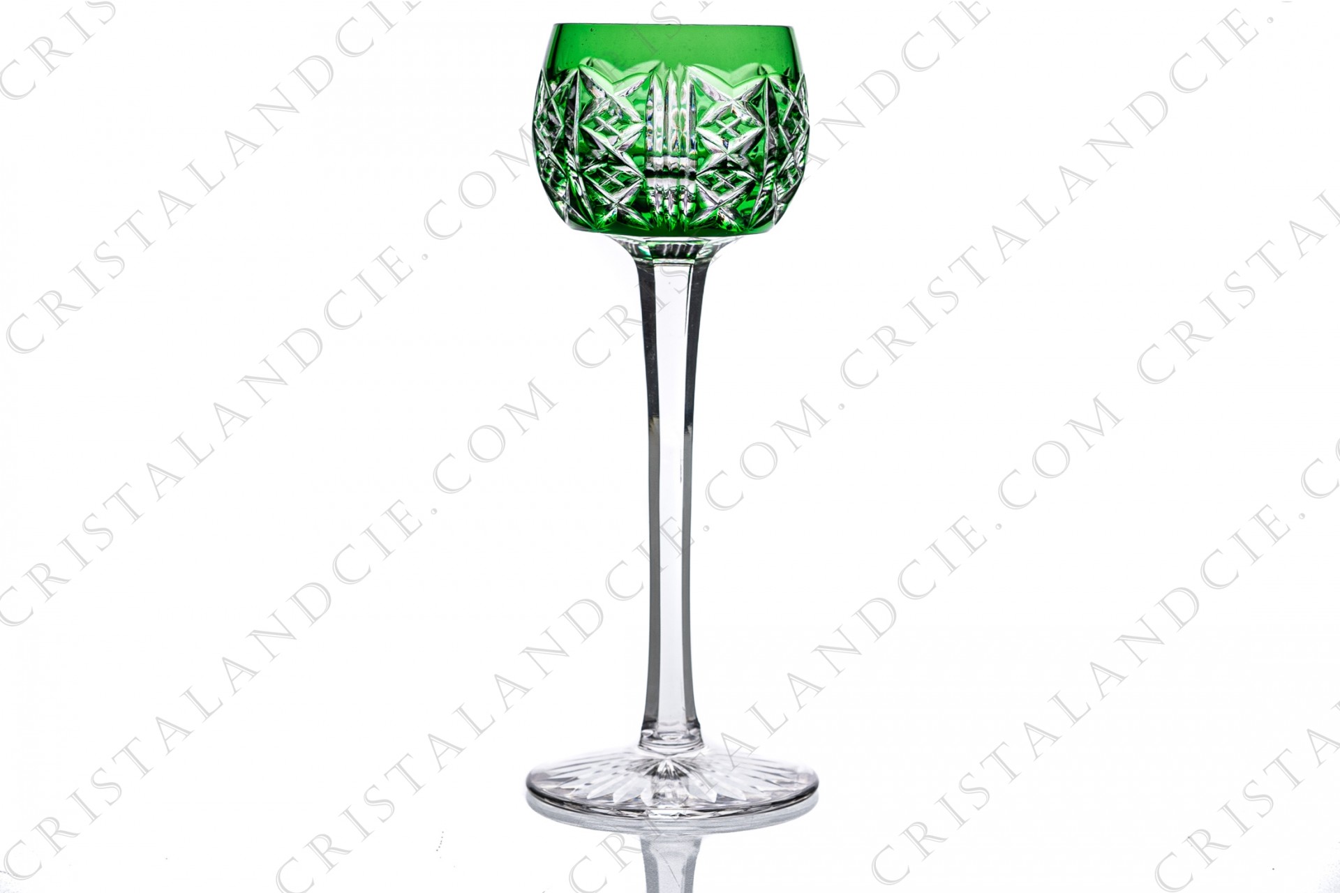 Verre à liqueur en cristal double couches vert de Saint-Louis modèle Riesling présentant un important décor taillé. Trop ancien pour être estampillé.
