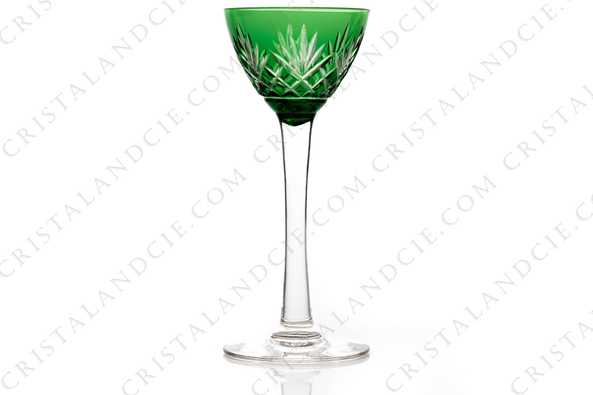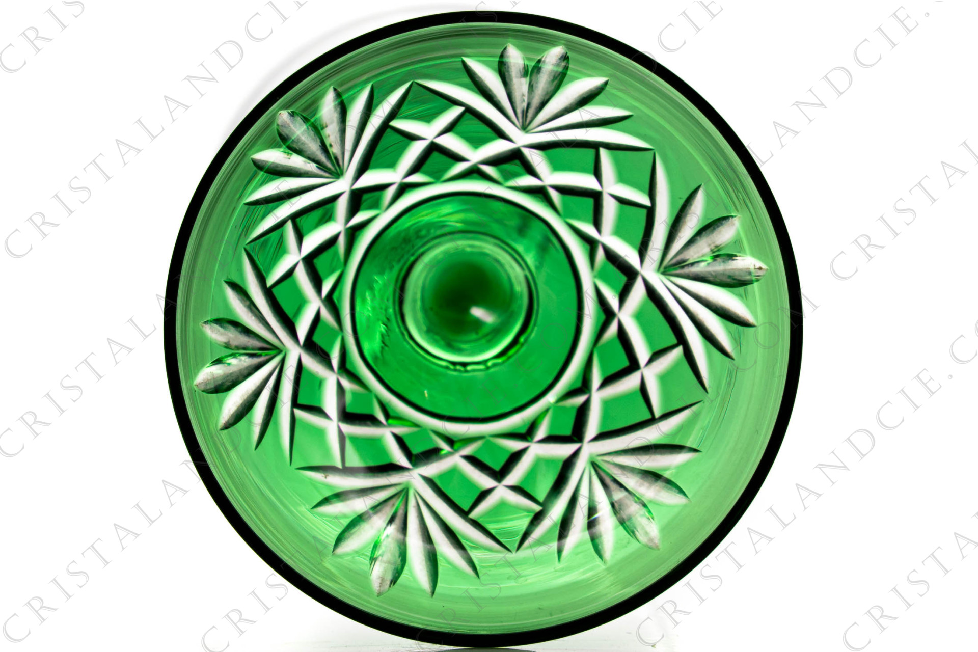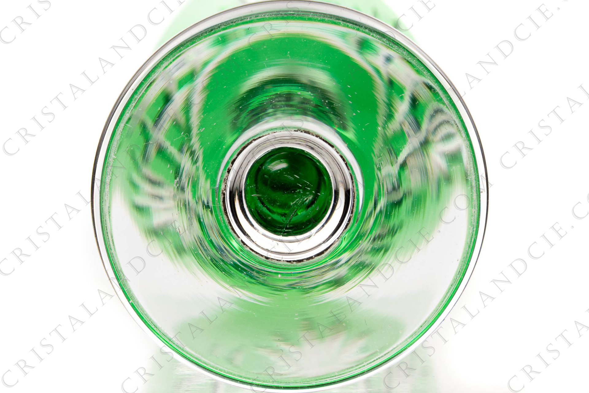 Verre à liqueur en cristal double couches vert de Saint-Louis modèle 701 présentant un décor taillé. Datant des années 1900. Trop ancien pour être estampillé. Modèle référencé dans le catalogue Articles Divers de 1908.