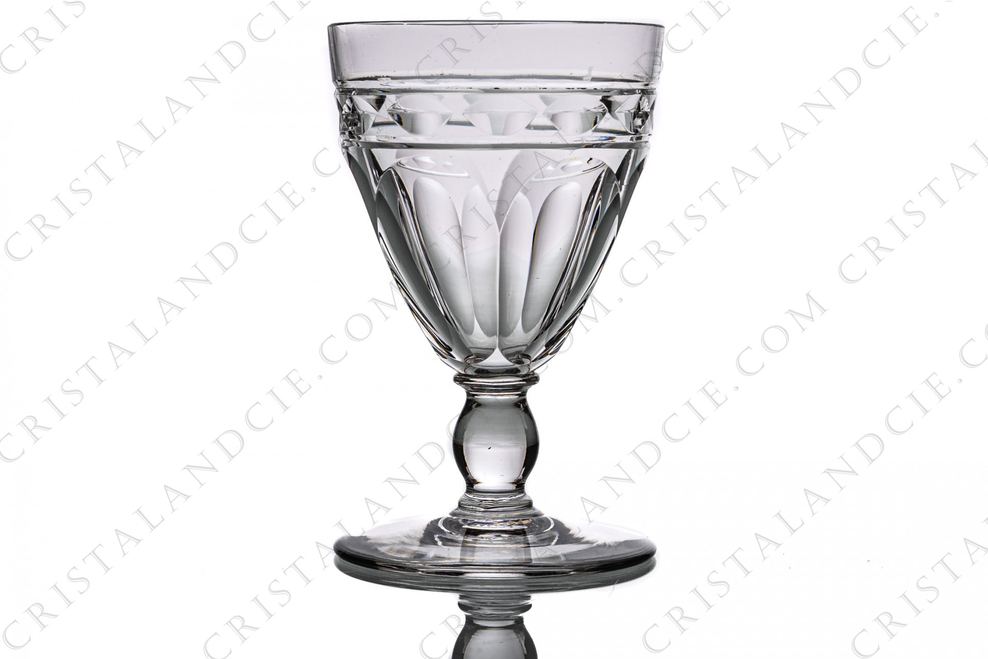 Verre à Porto n°5 en cristal de Baccarat modèle Campsegret orné de côtes plates et d'une frise. Estampillé.