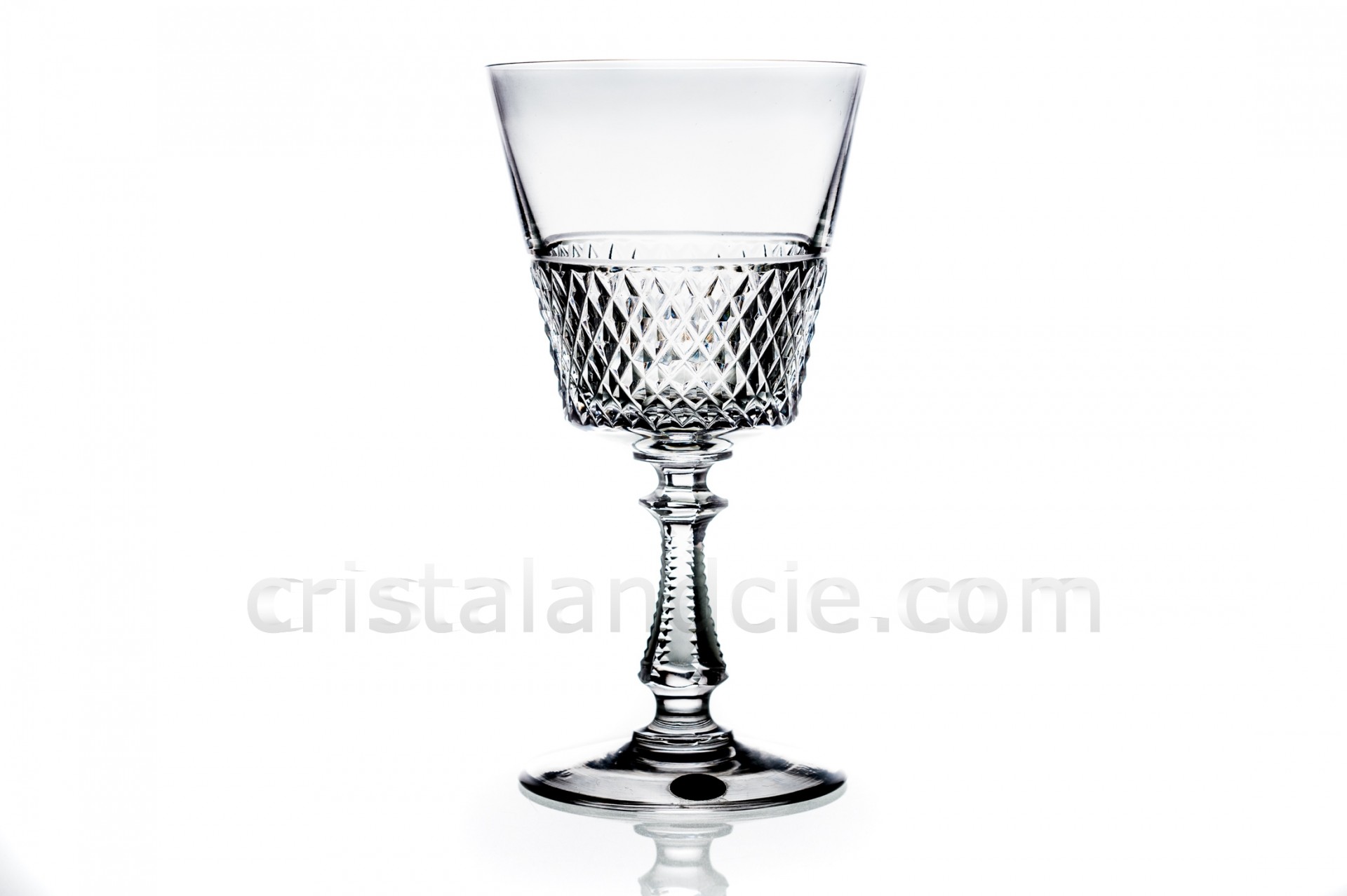 Verre à vin en cristal de Val Saint-Lambert modèle Heidelberg diamant à décor taillé. Non signé.