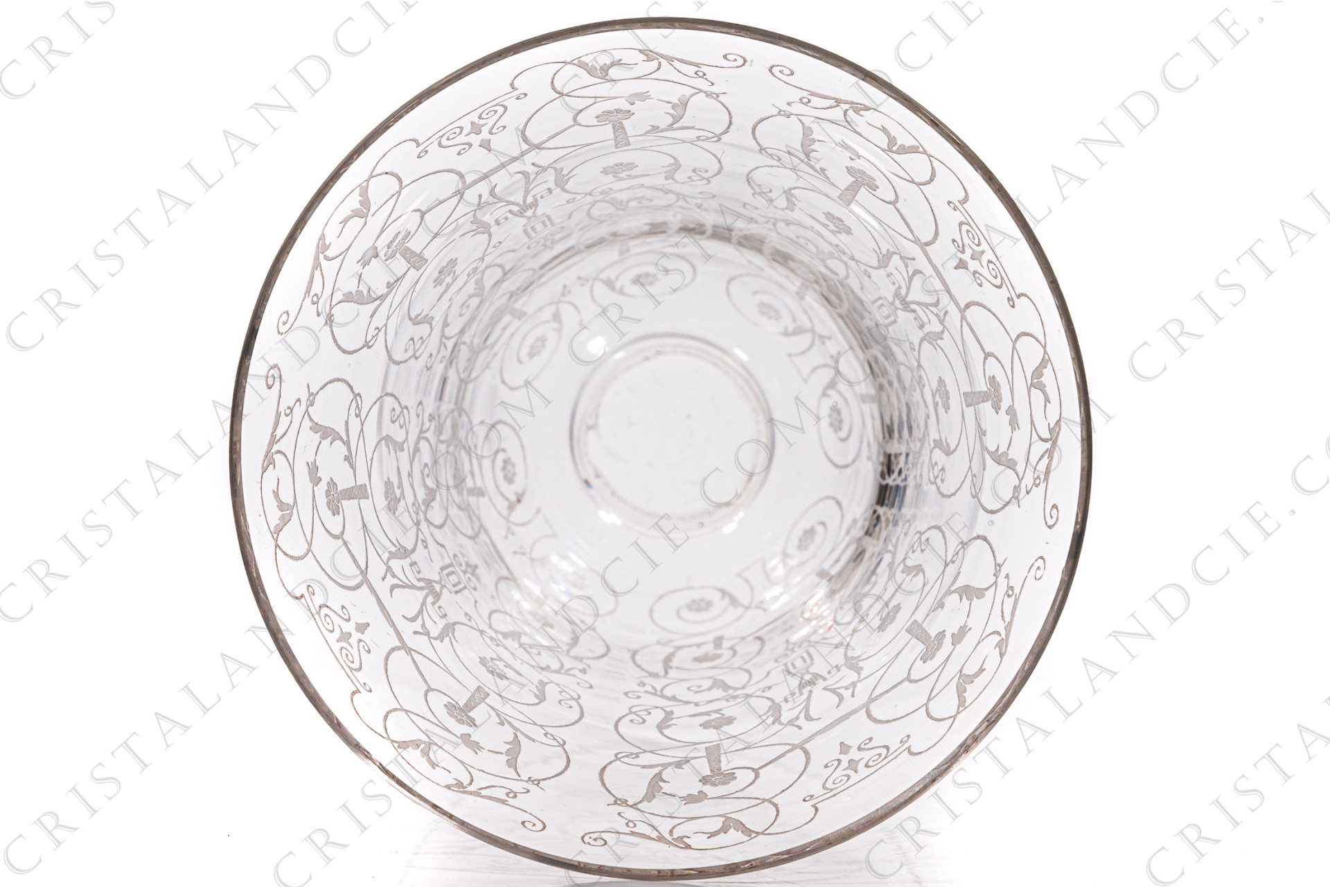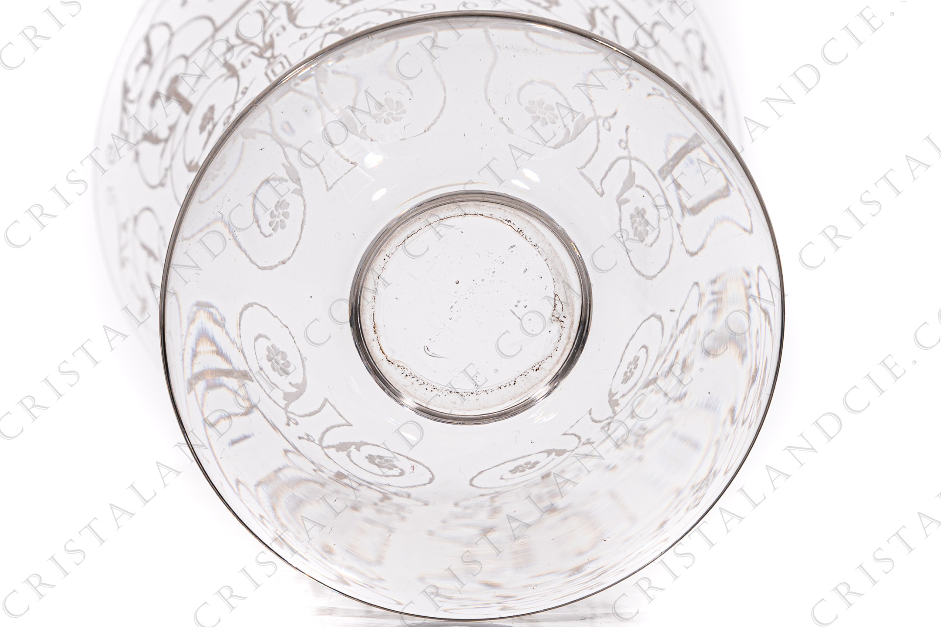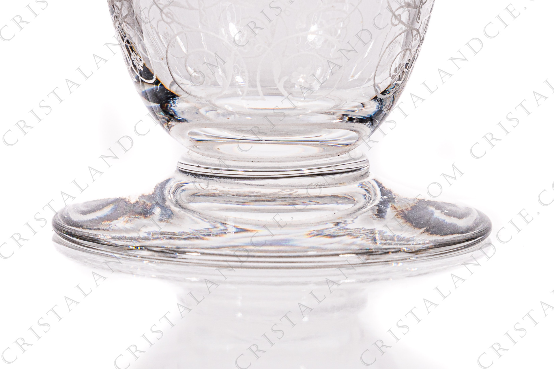 Verre à vin blanc n°4 en cristal de Baccarat modèle Michelangelo présentant un important décor gravé. Modèle produit de 1927 à 1970. Trop ancien pour être estampillé.