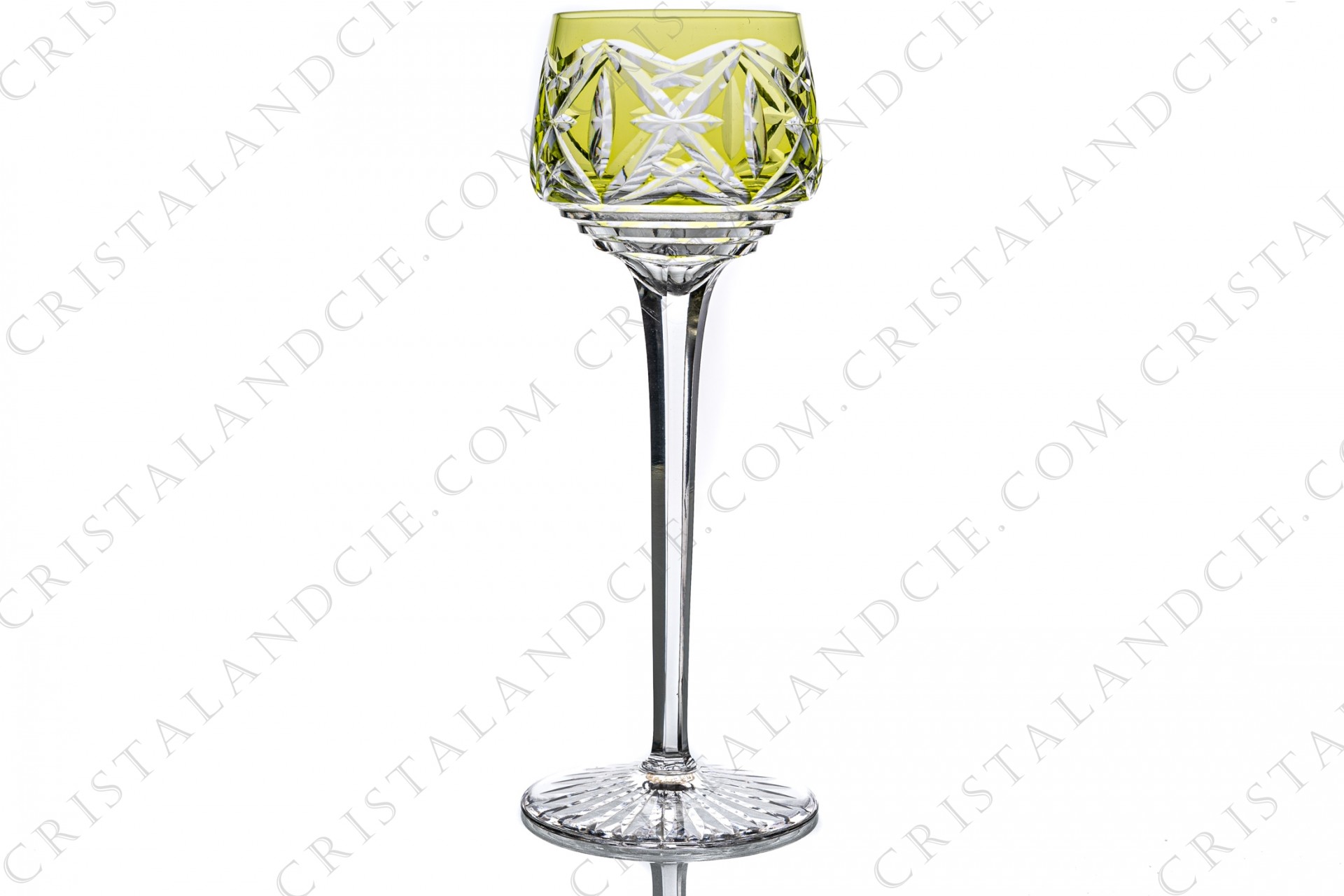 Verre à vin du Rhin roemer en cristal double-couches jaune de Saint-Louis forme 291 taille 914 présentant un important décor taillé. Estampillé.