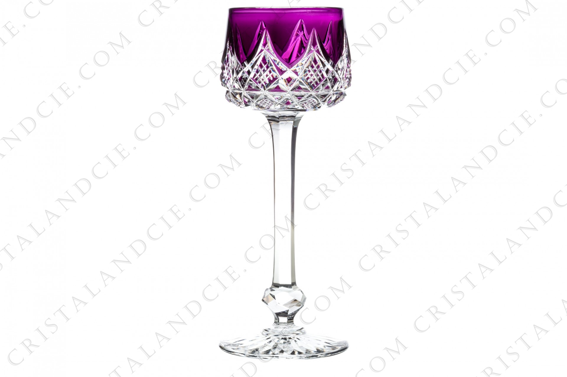 Verre à vin du Rhin roemer en cristal mauve double-couches de Baccarat modèle Colbert présentant un important décor taillé. Modèle produit de 1902 à 2002.