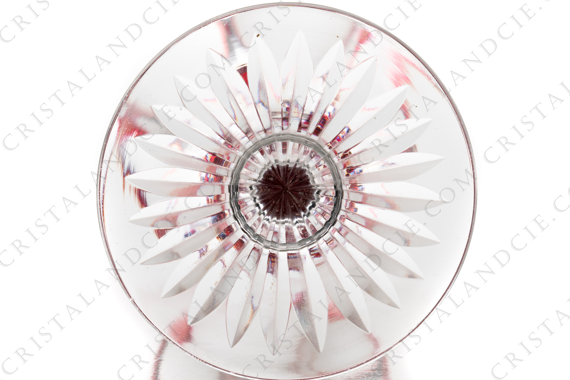 Verre à vin du Rhin, roemer en cristal double couches rouge de Saint-Louis forme 340 taille 5654, orné de côtes plates sur la paraison et la jambe et d'une étoile sous le pied. Trop ancien pour être estampillé. Référencé dans le catalogue de 1948.