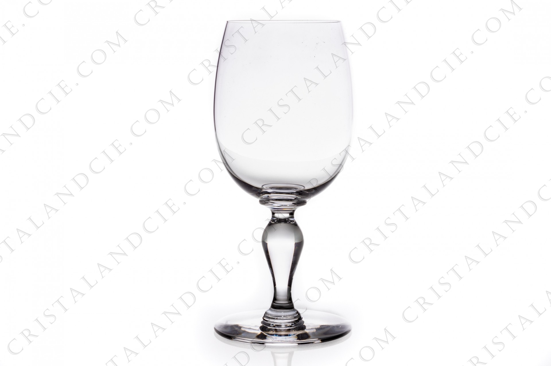 Verre à vin n°3 en cristal de Baccarat modèle Romane présentant une jambe balustre. Modèle produit de 1992 à 1996. Excellent état. Ht: 15,6 cm Diam: 5,2 cm.